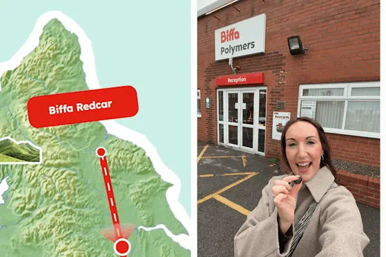 The process begins at Biffa Polymers in Redcar, where post-industrial plastic waste is shredded, cleaned and melted into recycled polypropylene pellets. These pellets form the foundation of ReBorn’s manufacturing process, offering a high-quality, UK-made alternative to virgin plastic while supporting the development of domestic recycling infrastructure.